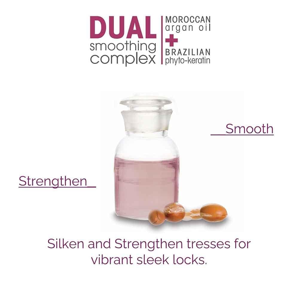 زيت بذور العنب (فيتيس فينيفيرا)، زيت بذور المكاديميا تيرنيفوليا (المكاديميا)، زيت بذور الجوجوبا (سيموندسيا تشينينسيس)، توكوفيريل أسيتات (فيتامين E)، *زيت نواة الأرغانيا سبينوزا (الأرغان)، مستخلص الكيراتين المتحلل من باولينيا كوبانا (الكاكاو البرازيلي) [فيتو-كيراتين]، *مستخلص أسبالاثوس لينيريس (شاي الرويبوس)، *زيت جوز الهند (كوكوس نوسيفيرا)، *مستخلص أنواع زبدة الشيا (بوتيروسبيرموم باركي)، فينوكسي إيثانول، عطر طبيعي. *عضوي معتمد من وزارة الزراعة الأمريكية.